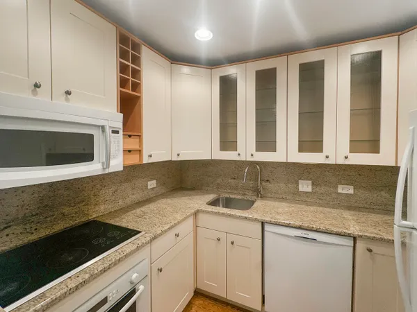 Renovated, south-facing top-floor 2-bedroom, 2-bath residence with a private balcony. The desirable split-bedroom layout offers excellent privacy. Features include newly refinished hardwood floors throughout and an open-concept kitchen with 42" custom cabinetry, granite countertops, and stainless steel appliances. Both bathrooms have been newly renovated, and the home offers two spacious walk-in closets. Enjoy full-service building amenities including a well-equipped fitness center, three landscaped sun decks, bike room, storage lockers, dry cleaning services, receiving room, on-site management and maintenance, 24-hour door staff, and two laundry rooms. Perfectly located in the heart of the city, just steps from Navy Pier, Target, Starbucks, Whole Foods, AMC Theater, the Riverwalk, lakefront, and premier dining and shopping. Cable and internet are included in the monthly assessment. Indoor garage parking is available for an additional $30,000.