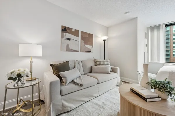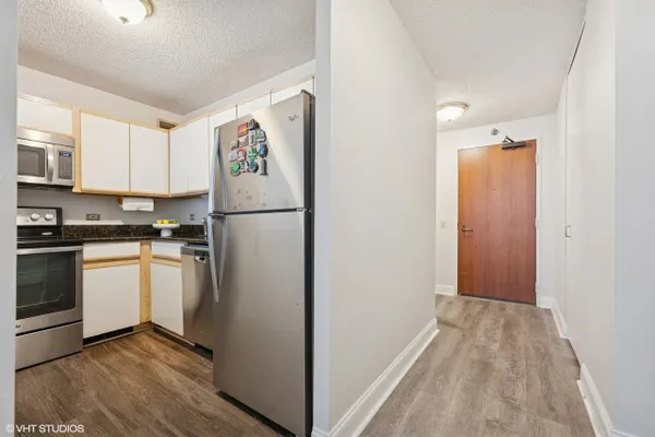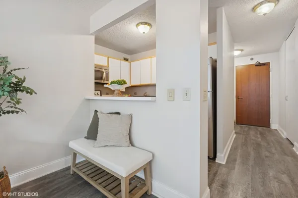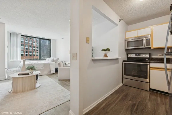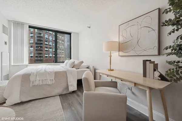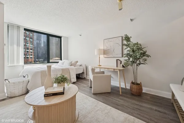 Welcome to 440 N McClurg Court, where the best of Streeterville living meets modern comfort and unbeatable convenience. This beautifully updated, south-facing studio offers over 500 square feet of bright, open space with sweeping city views and a glimpse of the Chicago River. Step inside to find stylish grey-toned hardwood floors, crisp new 5" baseboards, and fresh paint throughout. The open kitchen has been refreshed with sleek new countertops and stainless steel appliances, while the updated bathroom adds a contemporary touch. A dedicated office niche makes working from home both easy and efficient. You'll also love the oversized walk-in closet, offering abundant storage. Located just steps from Navy Pier, Target, Walgreens, Whole Foods, the lakefront, dining, shopping, and public transit, this prime location puts everything you need right at your doorstep. Enjoy the perks of a well-managed, full-service building with 24-hour door staff, a new sundeck, and a fully equipped fitness center. Assessment include: Heat, AC, Water, TV/Cable, + Internet Access. Perfect as a primary residence or in-town getaway - this is a rare find in the heart of it all!