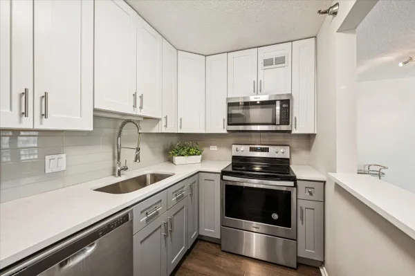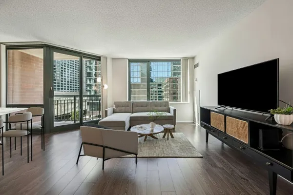 Updated & Move-In Ready in Streeterville. This spacious one-bedroom condo combines style, comfort, and convenience in a prime location. The open living and dining room features a large picture window and sliding glass doors that lead to a private balcony with city views. The sleek kitchen showcases full-height white and gray cabinetry, quartz countertops, and stainless steel appliances-perfect for both cooking and entertaining. The primary suite offers a generous retreat with hardwood floors, a walk-in closet, and a large picture window. The renovated bath is designed with a quartz-topped vanity and a stone-tiled walk-in shower with glass doors. Two additional closets add to the home's abundant storage. Enjoy fresh air on your private balcony, or step out to explore everything Streeterville has to offer-Target, Whole Foods, Walgreens, the Northwestern Medical Campus, and the lakefront are just moments away. The full-amenity building features 24-hour door staff, a fitness center, sundecks with grilling stations, and a convenient parcel receiving room. Deeded Parking Space available for Purchase $35,000